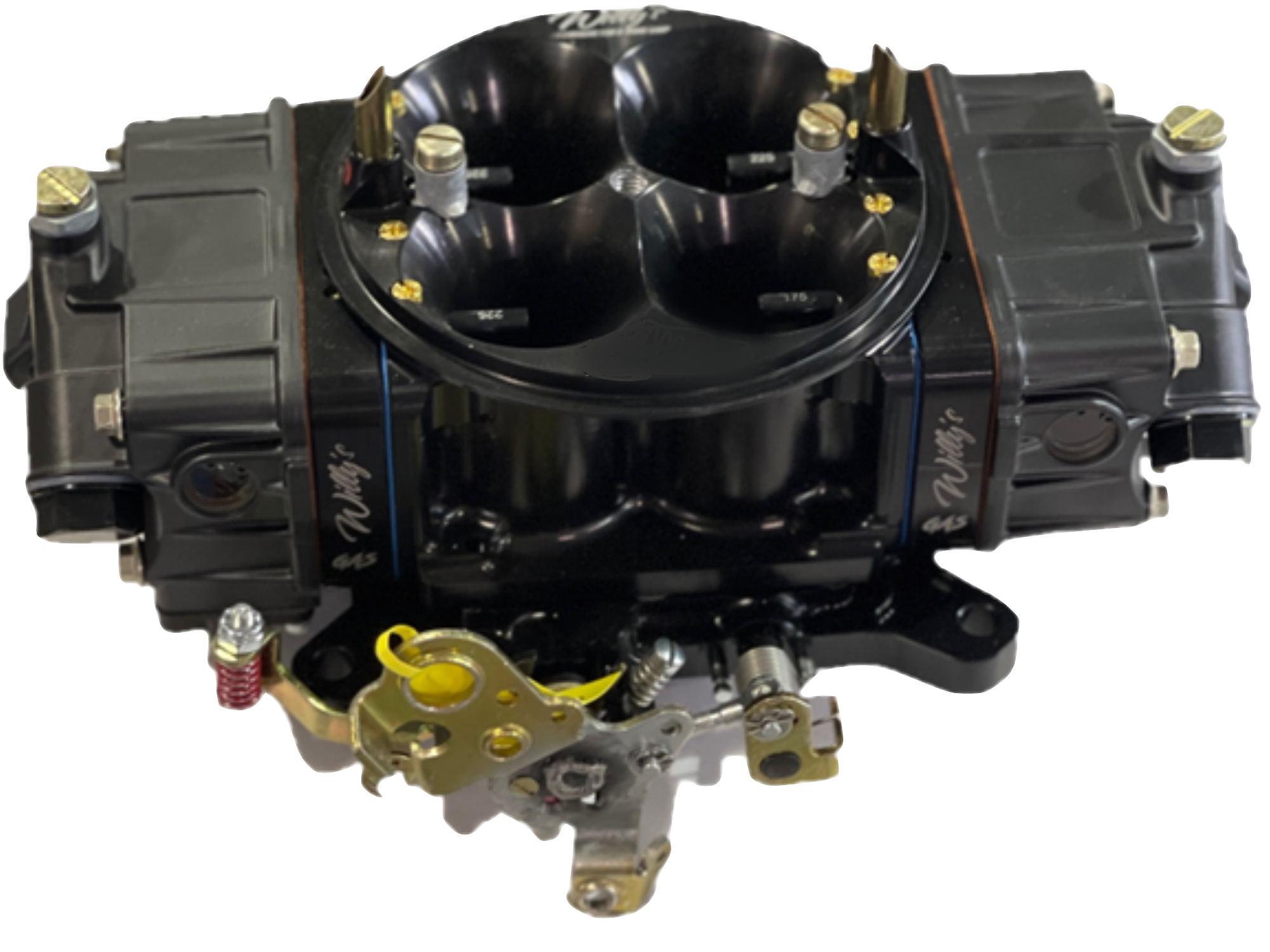 Black coated 602 carburetor. Equipped with a cast aluminum main body, cast aluminum float bowls, billet metering blocks, and a billet base plate.